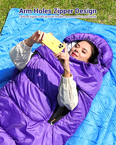 Sleeping Bags, Sportneer 4 Seasons Sleeping Bag with Zippered Holes for Arms and Feet, Warm Cold Weather Lightweight Waterproof Sleeping Bags for Kids Adults Backpacking Camping Hiking Travel