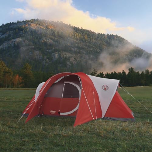 Coleman Bristol 8-Person Camping Tent with Modified Dome & Hinged Door, Red with Grey Accents