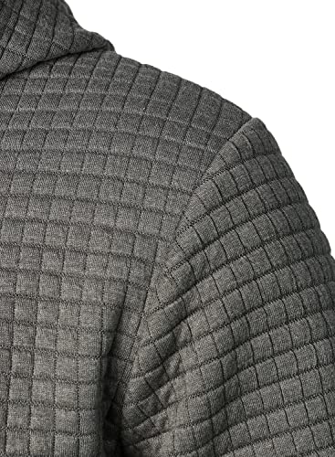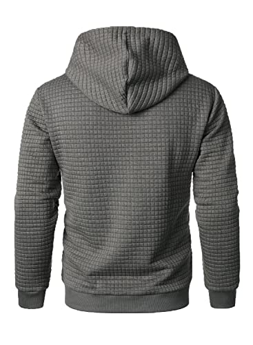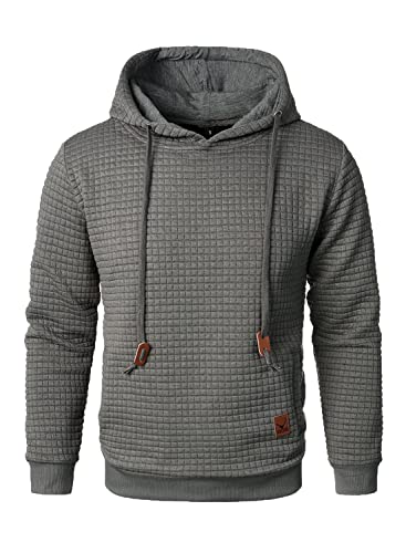 HOOD CREW Men’s Pure Color Casual Long Sleeved Plaid Hooded Pullover Sweatshirt