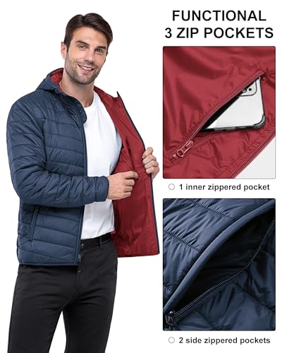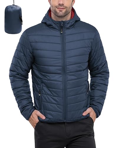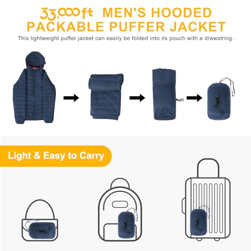 33,000ft Men’s Lightweight Packable Insulated Puffer Winter Jacket with Hood, Water-Resistant Down Alternative Puffy Coat