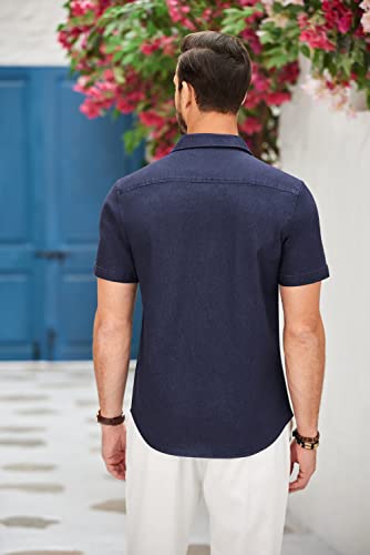 COOFANDY Men’s Casual Button Down Shirts Short Sleeve Plaid Collar Denim Work Shirts