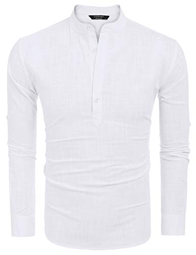 COOFANDY Men’s Casual Long Sleeve Henley Shirts Cotton Linen Premium Beach T-Shirt