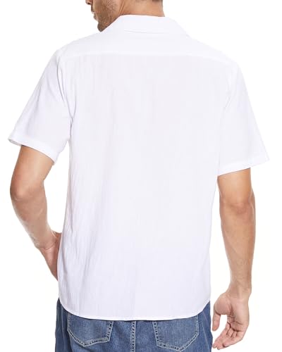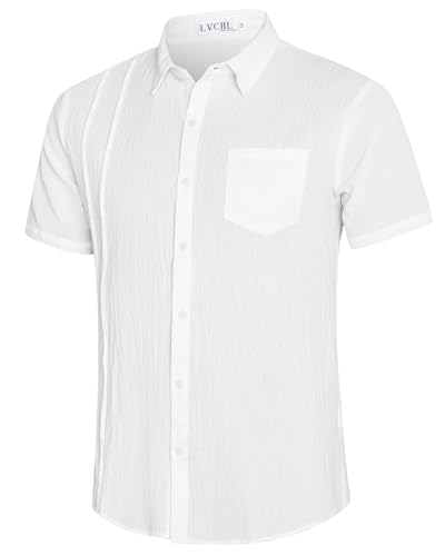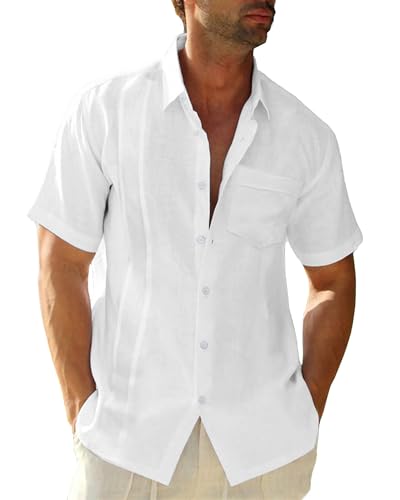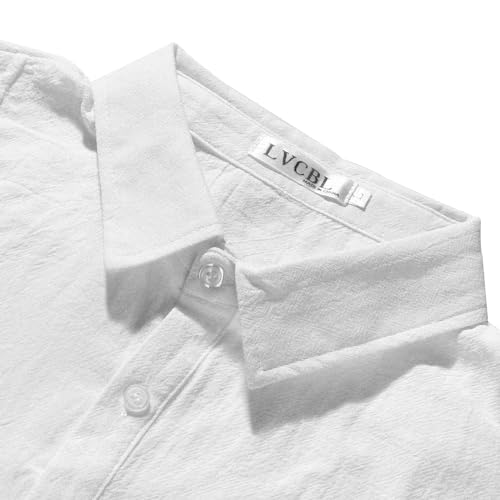 LVCBL Mens Linen Shirts Mens Short Sleeve Shirts Casual Button Down Shirts Lapel with Pocket