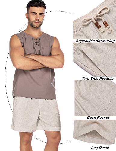 COOFANDY Men’s Linen Shorts Casual Elastic Waist Drawstring Summer Beach Shorts