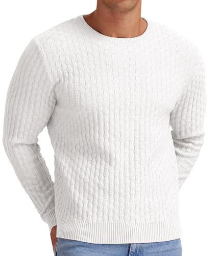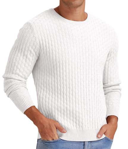 Askdeer Men’s Crewneck Sweater Classic Waffle Pullover Sweaters Soft Casual Sweaters with Ribbing Edge
