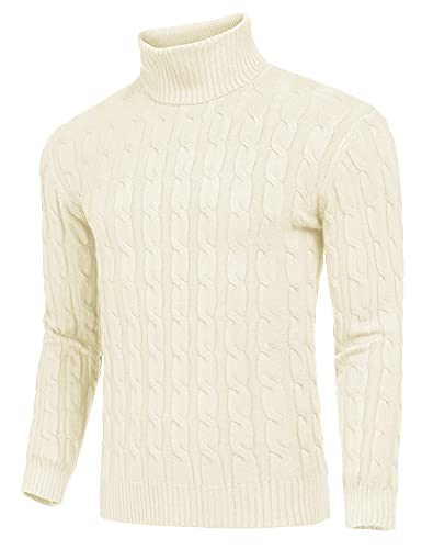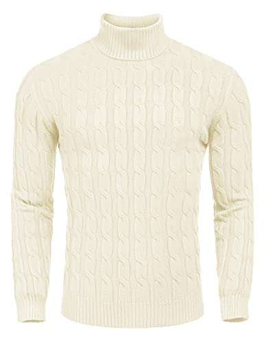 COOFANDY Men’s Slim Fit Turtleneck Sweater Casual Twisted Knitted Pullover Sweaters Apricot