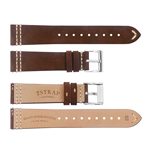 TStrap Leather Watch Band 20mm – Soft Brown Quick Release Watch Strap Replacement – Waterproof Sport Watch Bands for Men Women – Smart Watches Bracelet Black Clasp Buckle – 18mm 19mm 21mm 22mm