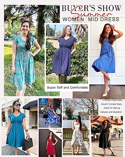 MISFAY Women Summer Dresses Ruffle Sleeve Casual Loose Swing Button Down A-Line Mid Dress with Pockets
