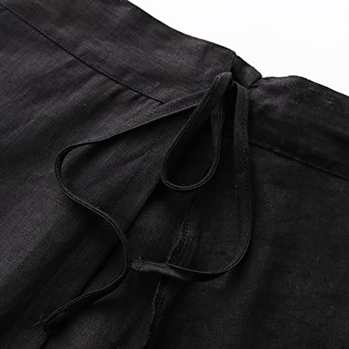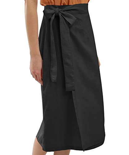 Amazhiyu Women’s 100% Linen Summer Midi Skirt High Waisted Self Tie Wrap Skirt