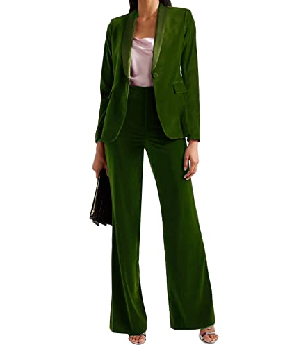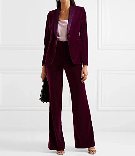 2 Pieces Pant Suits for Women Velvet Long Sleeve Suit Sets for Office Lady Business Blazer Tuxedo Suit