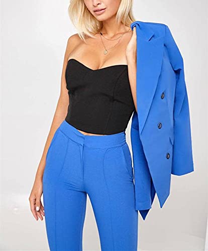 Lilis Women’s 2 Piece Outfit Casual Double Breasted Blazer and Pencil Pant Suits Set