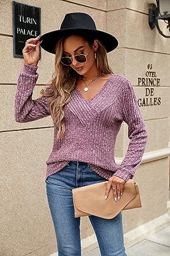 FactME Womens Long Sleeve Shirt Fall Sweater Lightweight V Neck Tunic Tops Clothing Trendy 2023 Fall