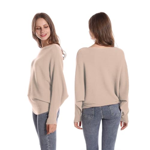 FULIER Women Girl’s Boat Neck Batwing Sleeves Dolman Knitted Sweaters and Pullovers Tops One Size