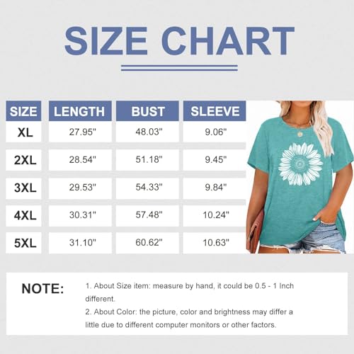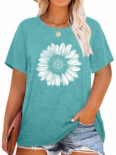 MK Shop Limited Plus Size Tops for Women Flower Graphic Shirts Loose Fit Summer Short Sleeve Tees Tops