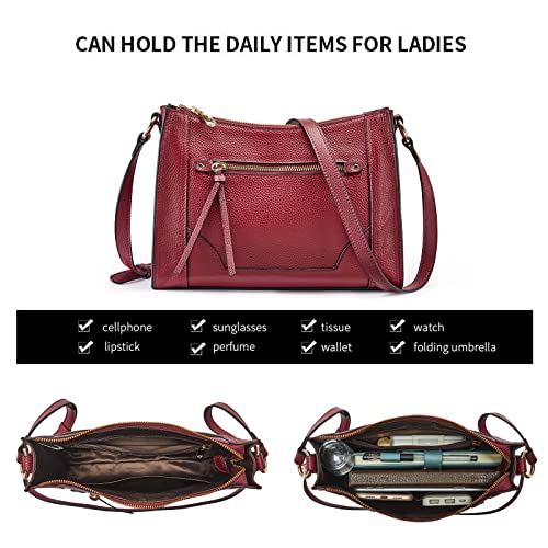 Material: Top genuine pebbled leather; Polyester lining; Padded bottom and strap are made of high-quality PU leather; Zipper closure (Please notice that the hardware of the black crossbody purse is silver or golden randomly)