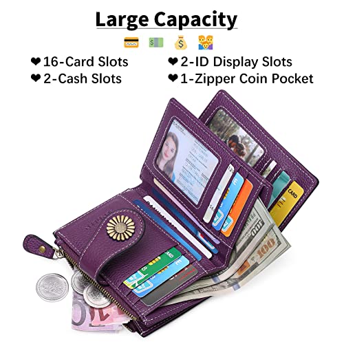 SENDEFN Small Women Wallet Leather Bifold Purse with ID Window