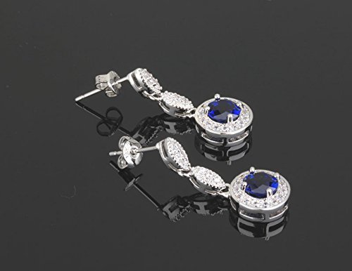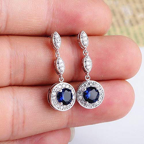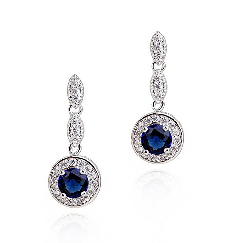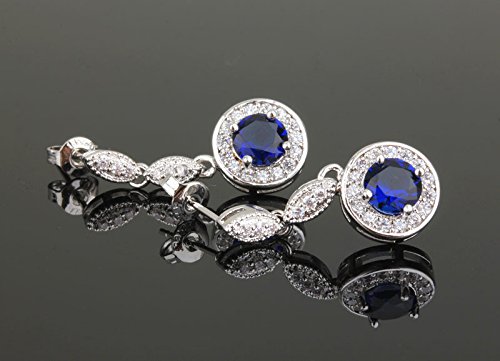 Crystalline Azuria Dangle Earrings with Round Blue Simulated Sapphire Zirconia Crystals 18K White Gold Plated for Women
