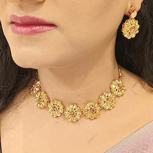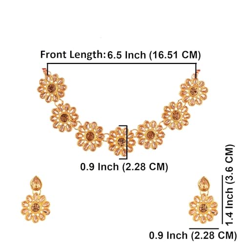 Efulgenz Indian Jewelry Choker Kundan Crystal Floral Necklace Earrings Maang Tikka Head Chain Bollywood Wedding Bridal Set, Valentines Day Gifts for Her, Anniversary Birthday Jewelry for Women Mom Wife Girlfriend, Valentines Jewelry