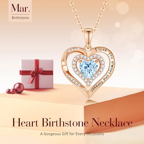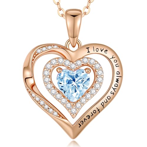 Lomantise Rose Gold Heart Birthstone Necklaces Gifts for Her Wife Girlfriend Women, S925 Sterling Silver Fine Jewelry Diamond Pendant Necklace Anniversary Birthday Gift for Women Her Wife Girlfriend Mom