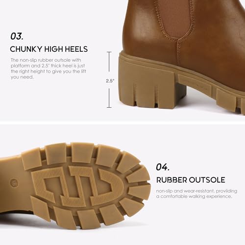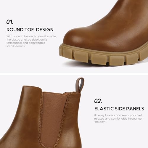 firelli Women Chelsea Boots Fashion Platform Ankle Boots Mid Heel Slip on Booties
