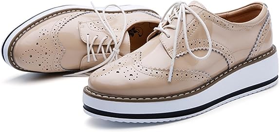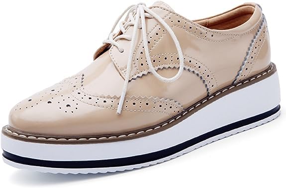 kkdom Women’s Platform Lace-Up Brogue Wingtips Square Toe Oxfords Shoes for ladis Women