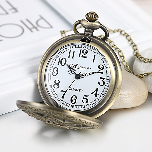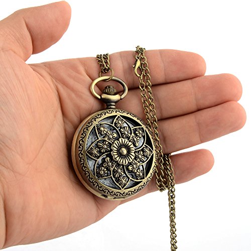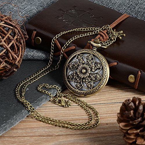 Avaner Romantic Sakura Flower Round Dial Arabic Numerals Analog Quartz Pocket Watch with 32 inch Chain for Women Gift