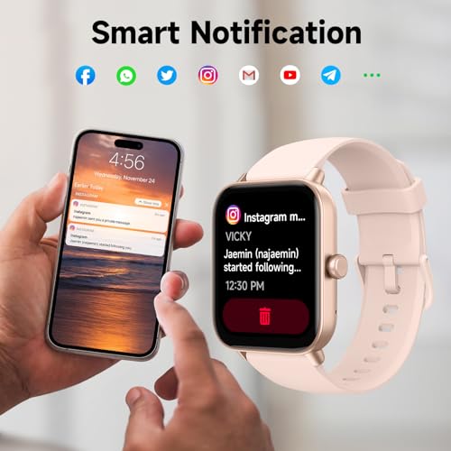 【100+ Sports Watch】Supporting 100+ Sports modes,this fitness watch for iphone could record your activity including calories,steps,distance,and workout time,generate reports after your exercising.