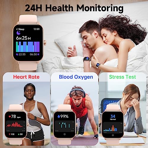 【24-Hour Health Monitor】This activity trackers and smartwatch for android ios phones supports heart rate,sleep and blood tracking,it is also a watch for women for its female-friendly design of recording period,and noticing girls the estimated one as recordings.This watch could be used as a stress tester,it estimates your stress index through your heartbeat interval,and helps you adjust your status at any time.