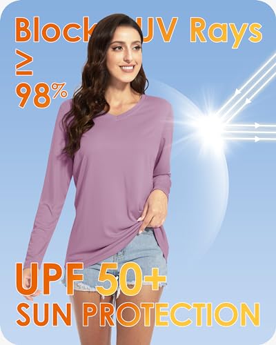 Boladeci Women’s UPF 50+ UV Protection Sun Shirts – Long Sleeve V-Neck Quick Dry Lightweight Plain Swim Tees Rash Guard