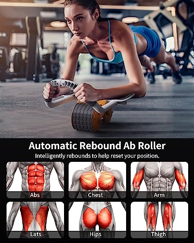 Ab Roller Wheel, Automatic Rebound Abdominal Wheel for Difficult Abdominal & Core Strength Training, Abs Roller Elbow Support Rebound Abdominal Wheel for Men Women