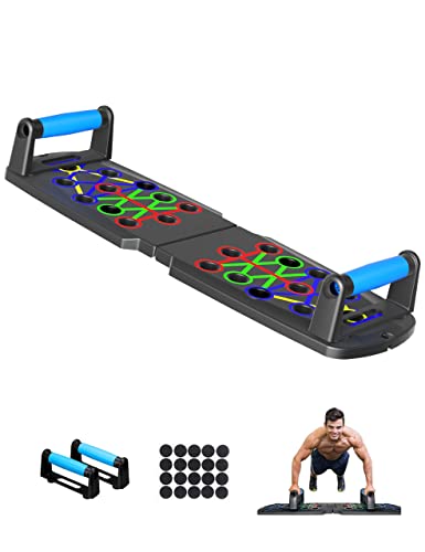 MULTIFUNCTIONAL : Push up board helps you exercise without hurting your wrists. It also lets you change the training distance and work your chest muscles more. The different colors show you the right exercise movements, and the handles can be adjusted for different muscle groups. This makes your workouts better.