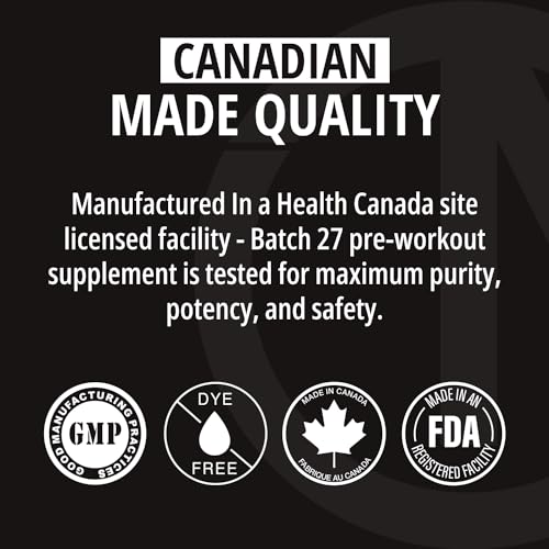 Canadian Made Quality: Manufactured In a Health Canada site licensed facility – Batch 27 pre-workout supplement is tested for maximum purity, potency, and safety. Unbeatable quality control guidelines and stringent ingredient testing make Batch your go-to pre work out supplement.