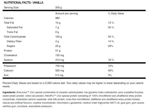 BioX Nitro Juice Gainer | High Protein Weight Gaining Formula | 980 Calories, 57g Protein with Fast & Slow Release Protein Blend, 3g Creatine Monohydrate, 2g Glutamine, 11g BCAAs (5.45KG, Vanilla)