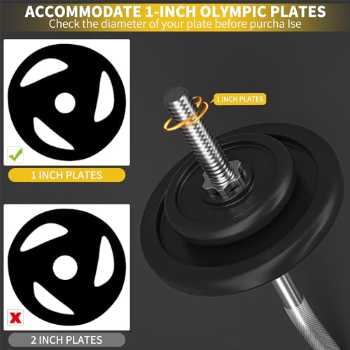 【For 1-inch plates】This barbell is intended for use with Olympic weight plates that have a center opening of 25 mm. The bar also has rotating sleeves, which ensures smooth lifting motions and reduce stress on your arms.