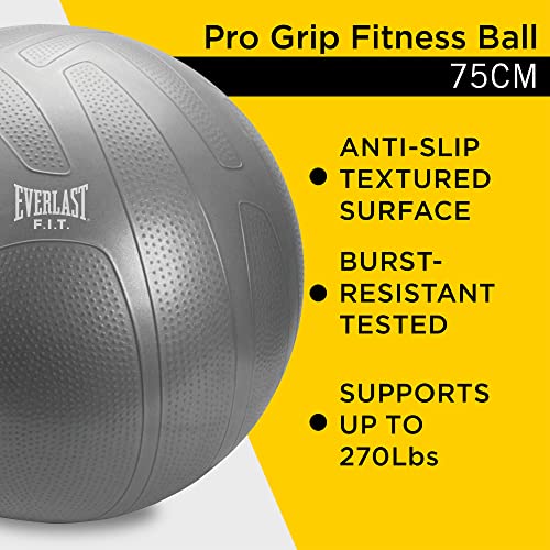 Everlast FIT Pro Grip Fitness Balls – Burst-Resistant, Anti-Slip, Pump Included, Great for Balance, Home Workouts, Yoga. (Available in 55cm, 65cm and 75cm)