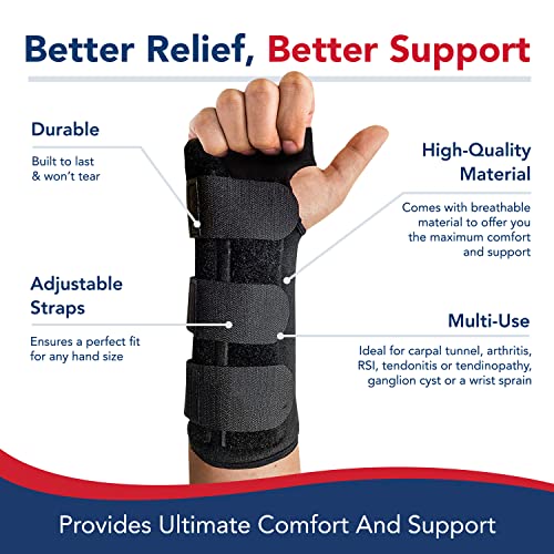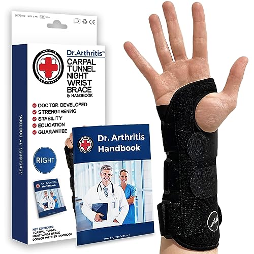 Doctor Developed for Carpal Tunnel Relief/Wrist Brace for Carpal Tunnel/Wrist Support & Hand Brace/Wrist Splint for Carpal Tunnel Syndrome/Adjustable Hand Splint (Right, Black)