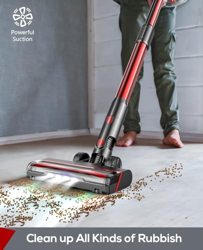 Cordless Vacuum Cleaners, 85,000PRM Powerful Rechargeable Wireless Vacuum Cleaner, Lightweight Stick Vacuum Up to 35Mins Runtime with 2 Adjustable Suction Modes, and 180° Bendable Wand (Tramp Red)