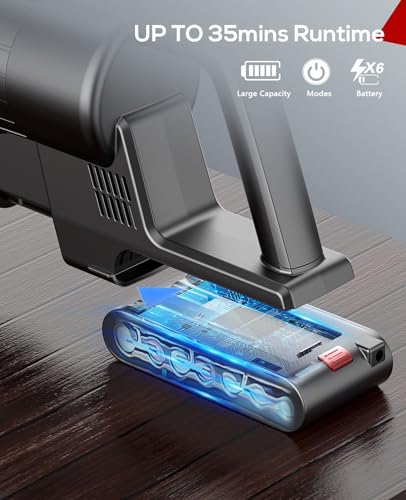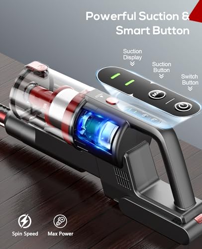 🏘️Versatile Cordless Vacuum: Cordless stick vacuum is equipped with a 85000RPM high-speed digtal motor that creates a high-speed airflow. The 11KPa suction at the “Max” mode is suitable for deep cleaning spots.💦 The total 22000mAh large-capacity battery provides up to 35mins of runtime at the “Max” mode, ensuring convenient whole-house cleaning.