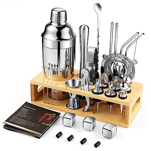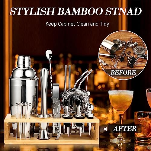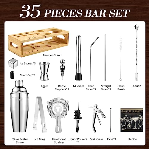 Mixology Bartender Kit Bar Set with Bamboo Stand, 35pcs 24oz Cocktail Shaker Set Cocktail Kit, Professional Stainless Steel Bar Tool Set