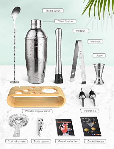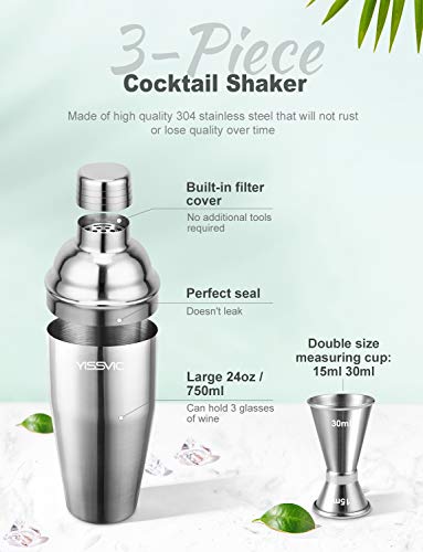 YISSVIC Cocktail Shaker Set 24oz Bartender Kit with Bamboo Stand Bar Tools Home Bar Tool Set for Beginners