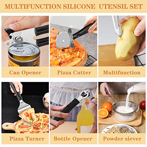 DURABLE & HARD WEARING & LASTS A LIFETIME: One- piece stainless steel core to enhance durability and toughness to keep them from bending chipping, warping or other deformation. top-grade 304 stainless steel and durable silicone durable than wooden or bamboo, not bend like plastic utensils or break like wooden utensil tools. You no more waste of money to replace inferior kitchenware frequently. A great gift for anyone who loves to cook, also a good gift set for your friends and family