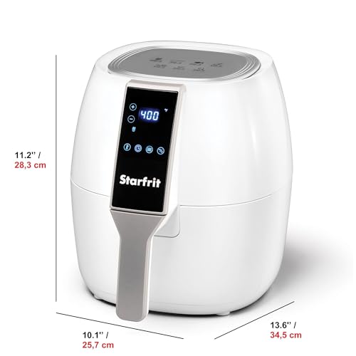 Introducing the Starfrit Electric Digital Air Fryer – your secret to guilt-free, flavor-packed cooking! Say goodbye to excessive oil and hello to irresistibly crispy yet tender disheshis sleek and compact 3.5L capacity fryer fits effortlessly into your kitchen, delivering a wide array of culinary delights at your fingertipsts LED touch screen offers seamless navigation with 7 preset functions, making meal preparation a breezerom golden, perfectly crispy french fries to succulent meats, delectable baked goods, fresh seafood, and vibrant vegetables – this air fryer does it alllean-up is a cinch with its removable non-stick basket and tray, while the overheat protection safety feature and cool touch handle provide peace of mindith 1400 Watts of power and adjustable temperature control, unleash your inner chef and savor healthier, mouthwatering creations every day. Elevate your cooking game with the Starfrit Electric Digital Air Fryer – where taste meets convenience! Cooks a wide variety of foods with little or no oil Achieve crispy and tender results with french fries, meats, baked goods, seafood, and vegetables Effortless cleaning with a removable non-stick basket and tray Precision cooking with digital temperature control7 preset digital cooking functions for easy meal preparation