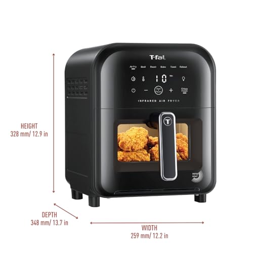 T-fal Infrared Air Fryer, Premium Infra-heat Technology, 7-in-1, 6L/ 6.3 QT, No-Preheating, Visible Window, 7 Cooking Programs with Extra Crispy Finish Program, Faster, Crispier, Juicier, Graphite