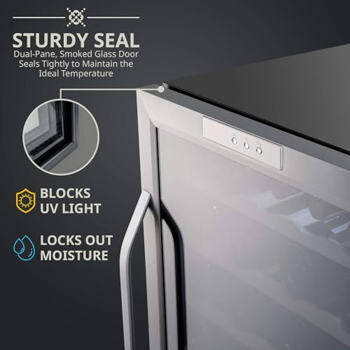 UV-RESISTANT DOUBLE-PANED THERMOPANE GLASS – A double-paned glass door not only keeps the interior insulated, but also protects your collection from harmful UV light that can damage the tannins and overall flavor of your wine.