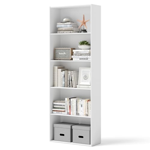 DORTALA Bookcase 5-Shelf Multi-Functional Modern Wood Storage Display Open Bookshelf for Home Office, White
