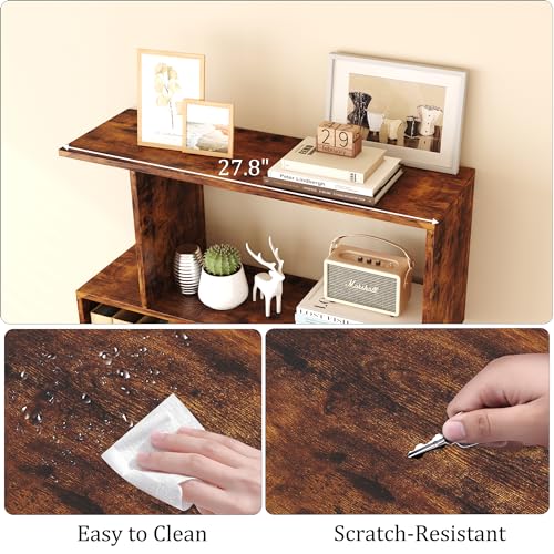 Yusong Bookshelf, Geometric Bookcase S Shaped Book Shelves Unit for Living Room, 5 Tier Decorative Display Shelf for Bedroom, Study Room, Rustic Brown