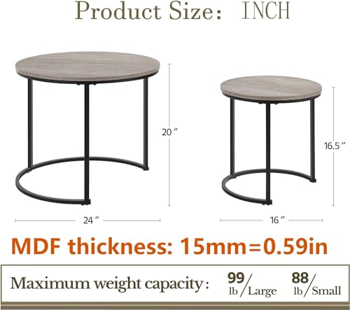 【Sturdy & Durable】: Our nesting coffee table set is built of premium MDF boards and thick iron tubes, MDF thickness15mm=0.59in,which is sturdy enough to meet your various needs, such as eating breakfast, working and socializing. With the waterproof and scratch-resistant covering, so you can simply wipe it clean with a dry cloth as needed.