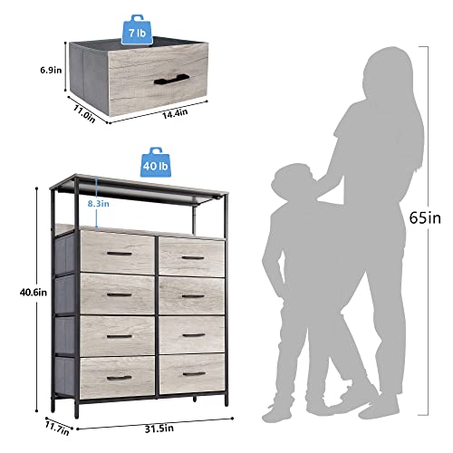 LYNCOHOME 8 Drawers Dresser with Shelves, Fabric Drawers with Wood Veneer, Chest of Drawers for Bedroom, Closet, Nursery, Attic(Greige)