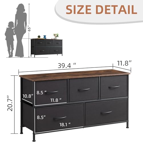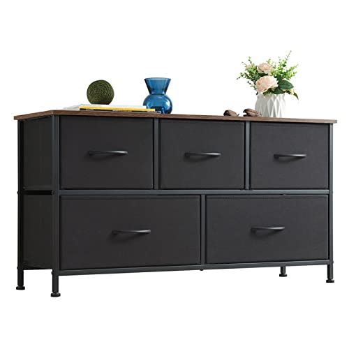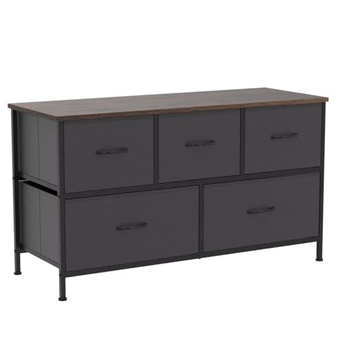 Somdot Dresser for Bedroom with 5 Drawers, Wide Storage Chest of Drawers with Removable Fabric Bins for Closet Bedside Nursery Living Room Laundry Entryway Hallway, Black