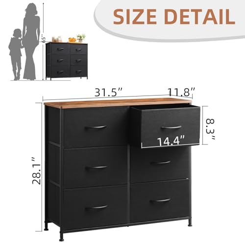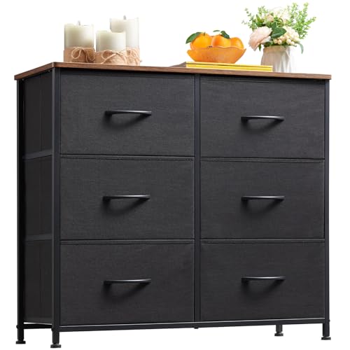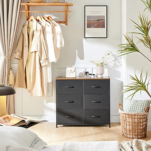 Somdot Dresser for Bedroom with 6 Drawers, 3-Tier Wide Storage Chest of Drawers with Removable Fabric Bins for Closet Nursery Bedside Living Room Laundry Entryway Hallway, Black